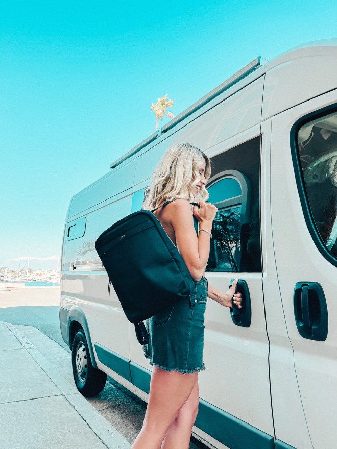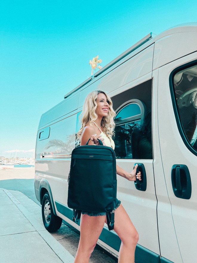 The Weekend Travel Bag will fit everything you need and more. With plenty of zip compartments, it’s super easy to keep all of your things organized. There are also 5 mesh pockets, a trolley sleeve, and a removable strap. If you’re flying, this is the perfect carry-on bag. No need to stress with checking your bag!