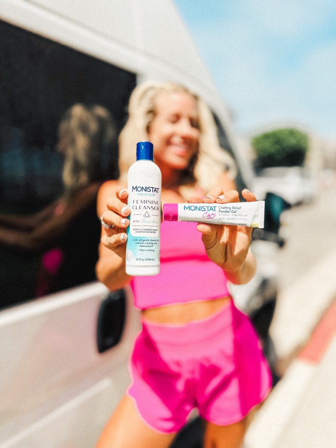 I also love using the Monistat Maintain Feminine Cleanser with Boric Acid. It provides a safe and gentle cleanse that matches a healthy and balanced PH based upon the natural range of a women’s external intimate areas. It is fragrance free and Gynecologist tested! I love that both of these can fit easily in your beach bag and can be used when needed.