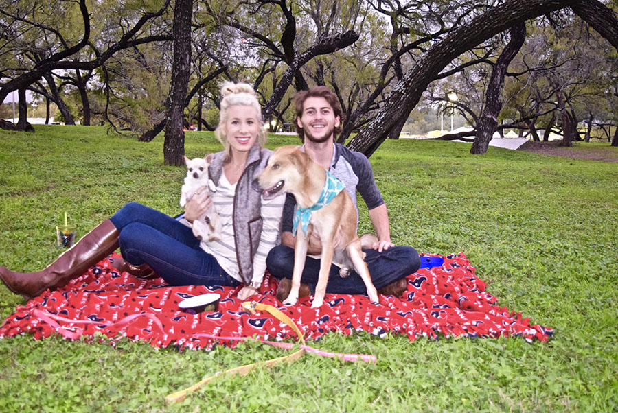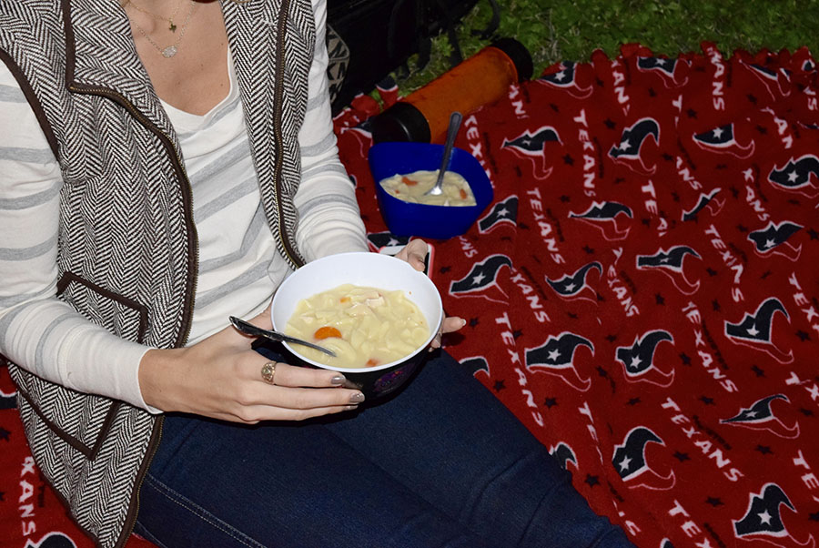 Yesterday we decided to go on a little family picnic with some chicken noodle soup. My mom has been making this soup for as long as I can remember and it is absolutely amazing! Now that the sun sets so early, we barely made it to the park before dark after I got off of work. The pups had a blast chasing each other, while we ate our soup, and enjoyed each others’ company. Nala tries SO hard to keep up with Layla and sometimes does a couple front rolls when she looses her footing (it’s hard not to laugh lol). Nights like these ones are definitely my favorite. It is almost impossible for us to get a picture with all 4 of us looking and being still, but we managed to get some okay shots. The vest I’m wearing is from the same site I linked, however they are currently sold out of it in brown. Thanks for stopping by and be sure to check out the chicken soup recipe below! Happy Chicken Soup for the Soul Day! 🙂