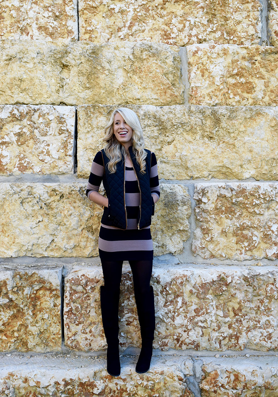 I love taking a simple, comfy, multi-seasonal dress and dressing it up for the colder seasons. I got this dress from Forever 21 years ago, so they no longer sell it, but I linked two similar dresses. The vest is from Dottie Couture and is one of my favorite items in my closet! This outfit is simple, comfy, and makes a statement.