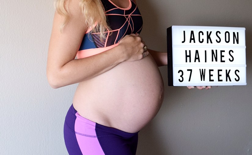 Happy Saturday! I can’t believe today is the first day of my 38th week; SO crazy! I’ve definitely been feeling pretty huge these days and am super tired all of the time. I’m still managing to get in some physical activity almost every day of the week. I was sick 24/7 the first 4 months of my pregnancy and didn’t do any physical activity and ate horribly. I basically let myself go and decided once I was feeling better, I would get in at least 20 minutes a day. For me, that is what gets me to the gym. I tell myself, “Come on Shelby! You can at least to two 10 minute intervals!” Once I get there, I usually end up going a little longer. I either do the elliptical or the treadmill on high incline. For the days I really don’t want to go to the gym, I at least go on a 20 minute walk, or do 20 minutes worth of weights that I have at home. I use my ankle weights to do donkey kicks (2nd picture), and my 12 pound weights to do various arm and leg work outs.