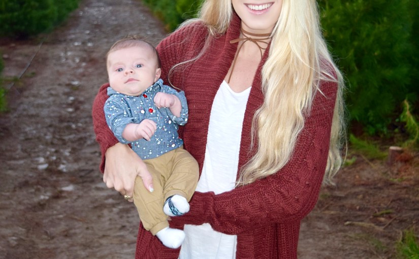 I just got my cardigan from Target and it is super cozy! I hate those cardigans that have that itchy material or are too heavy. This one is seriously perfect! I’m obsessed with how handsome Jack looked in his collared onesie from Rockin Baby. I just found out about this awesome company for little ones! Rockin Baby has some of the cutest baby clothes I’ve seen, and they are partnered with ChildFund! They have a program where they give slings and clothes to children in poverty. How awesome is that?! I love shopping for Jackson knowing that I’m also giving back! The outfit he is wearing in the picture below is also from Rockin Baby. They are currently having a 50% off everything sale until tomorrow; perfect for the up coming holidays!