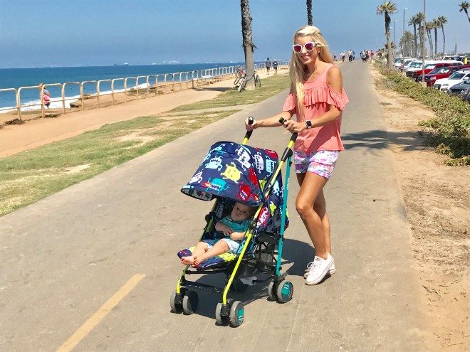We used our new stroller from Cosatto the other morning to watch the US Open! We are in love with it! I love how far the hood extends. It is always sunny here in Cali so the extra length really makes a difference. Our other stroller similar to this one had the worst hood! The sun was always in his face or I was walking backwards to prevent it haha. I also love the spacious basket and storage pocket! This stroller literally has it all!! Here is a full list of all the features: