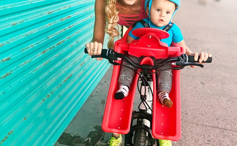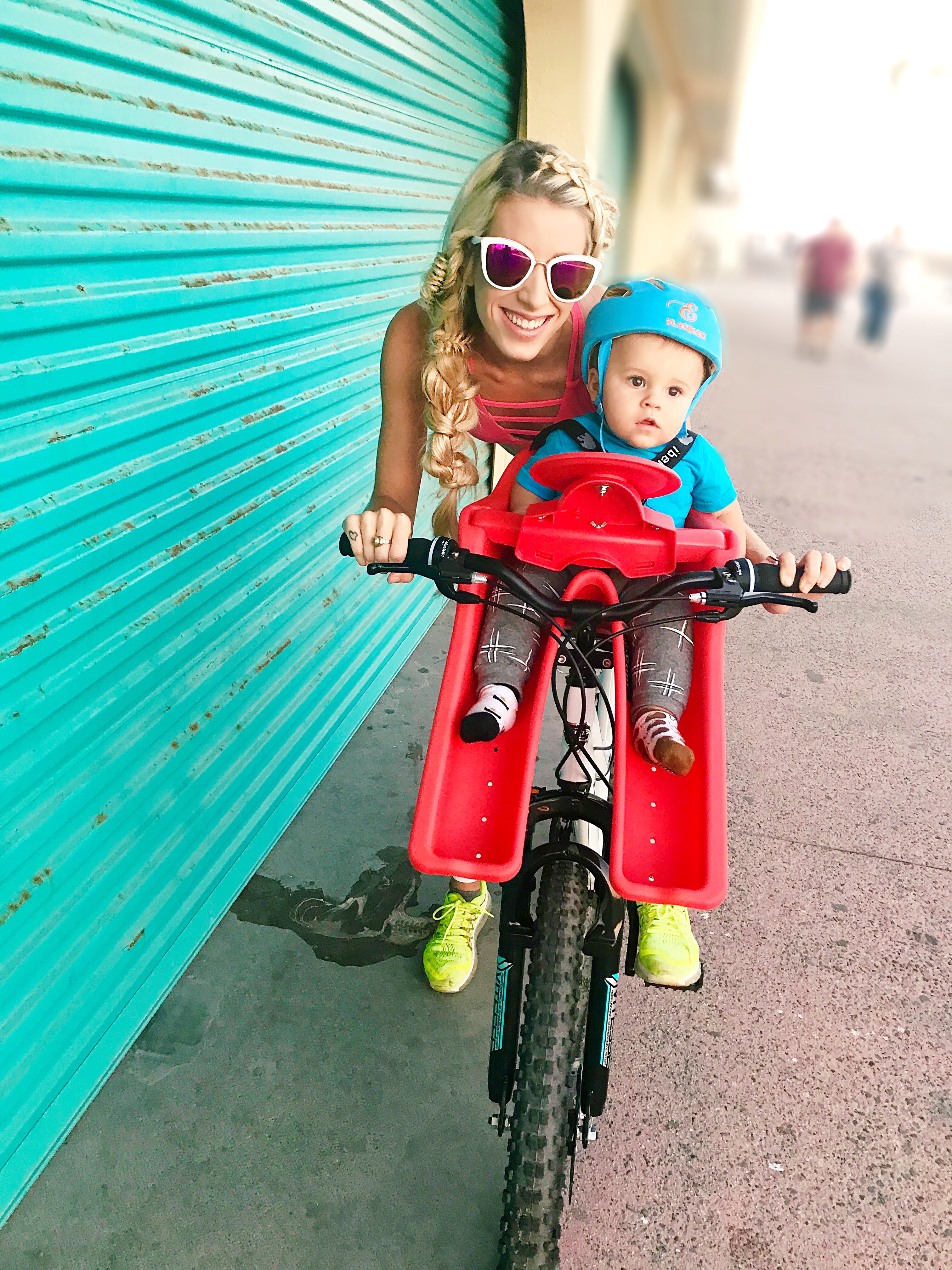 Thanks to iBert I am able to bring Jackson on these bike rides. This bike seat is my far one of the coolest things I’ve EVER seen!!! I love having Jackson in kissing range and he loves being up front. He even has his own steering wheel haha. He’s obsessed with it!! Every time I lift the wheel to take him out he pulls it back down! The seat comes with super soft cushions and safety belts to keep your little one buckled in. This is my new favorite thing to do with Jackson. Every time that I pull the bike out he gets SO excited. It’s literally the cutest thing ever! Above is the link for the helmet that we got for Jackson off of Amazon.