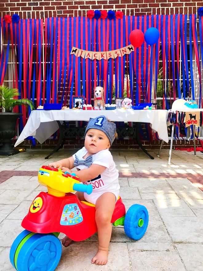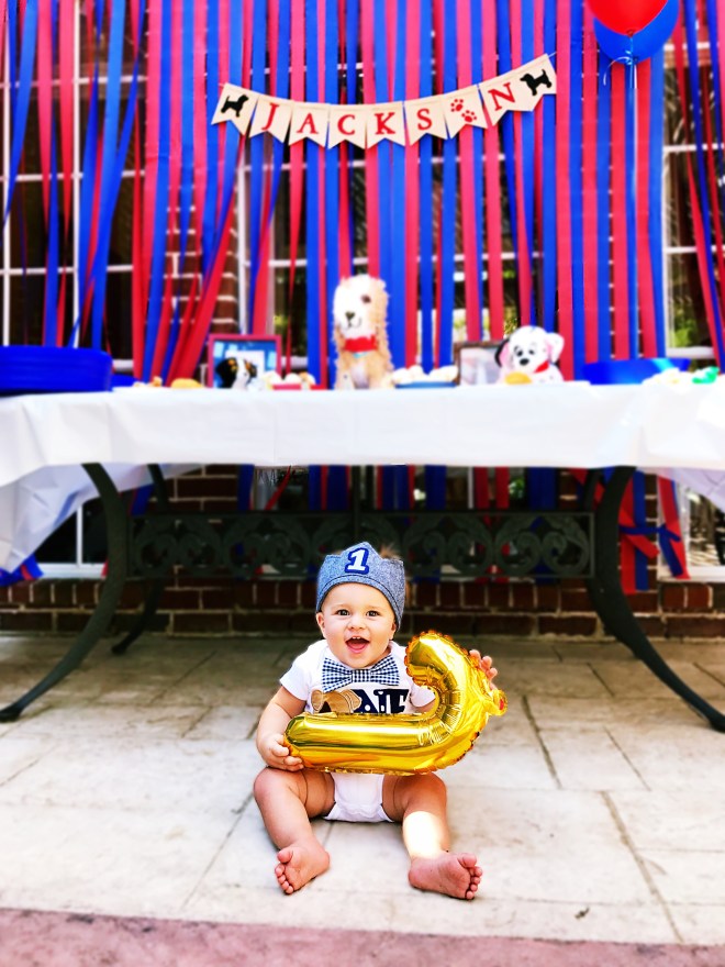 Our little pup turned ONE last weekend and I’m still in disbelief!! I can’t believe it has been a year ( I literally can’t no matter how hard I try haha.) He has been obsessed with our dogs since day one and has pointed out every single dog he sees in books since he started “reading”! I knew I had to turn his obsession into a theme for his party, so I started browsing one of my all-time favorite sites, Etsy. I found No Land Like Garland and fell in love with her puppy themed parties! Make sure you check out her Etsy page. She is so creative and affordable!!