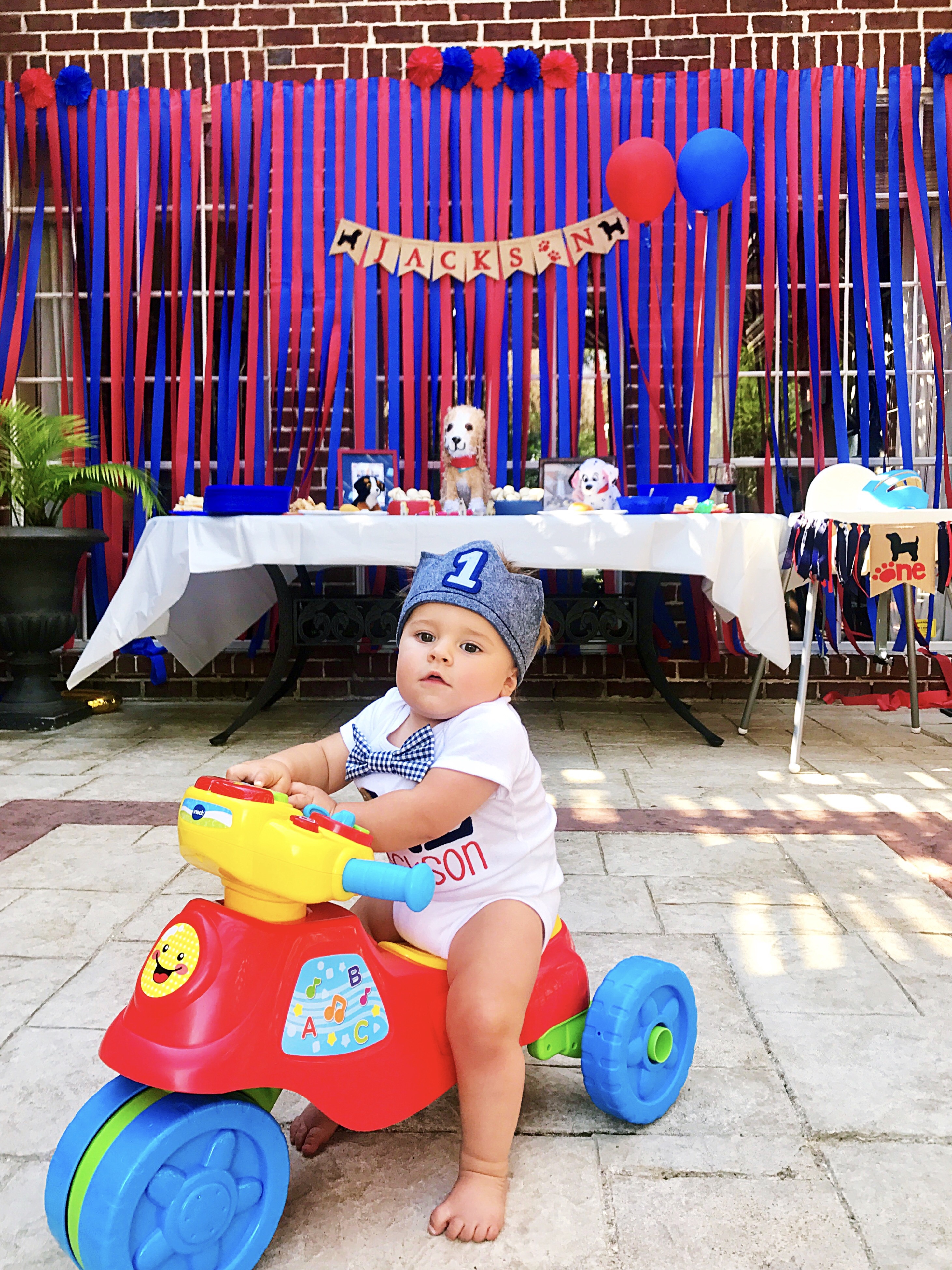 Our little pup turned ONE last weekend and I’m still in disbelief!! I can’t believe it has been a year ( I literally can’t no matter how hard I try haha.) He has been obsessed with our dogs since day one and has pointed out every single dog he sees in books since he started “reading”! I knew I had to turn his obsession into a theme for his party, so I started browsing one of my all-time favorite sites, Etsy. I found No Land Like Garland and fell in love with her puppy themed parties! Make sure you check out her Etsy page. She is so creative and affordable!!