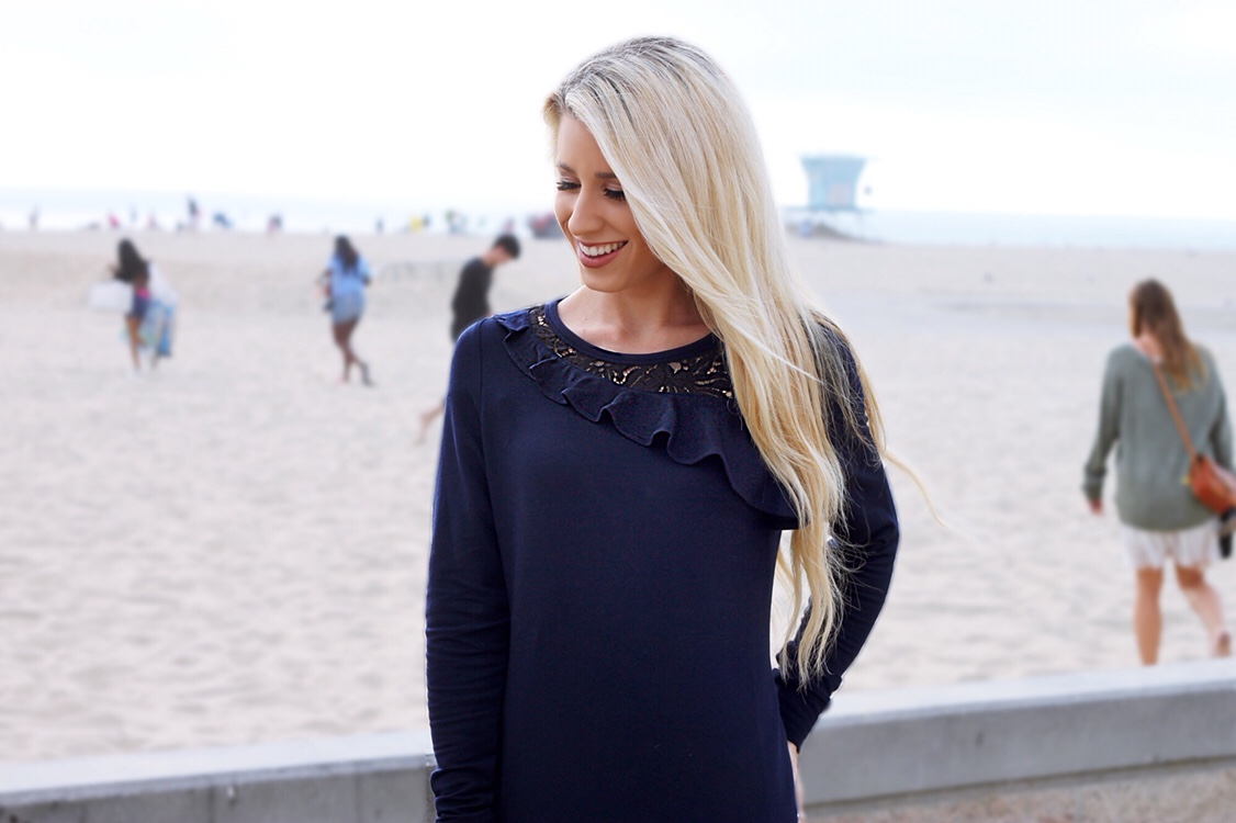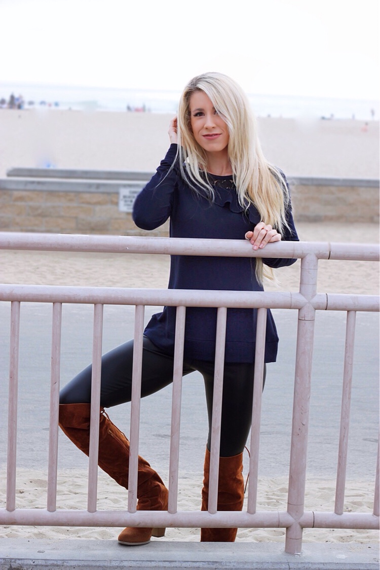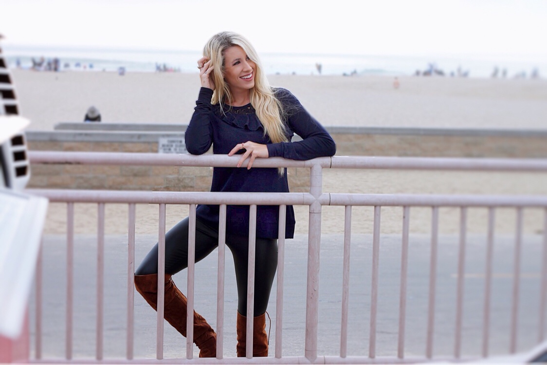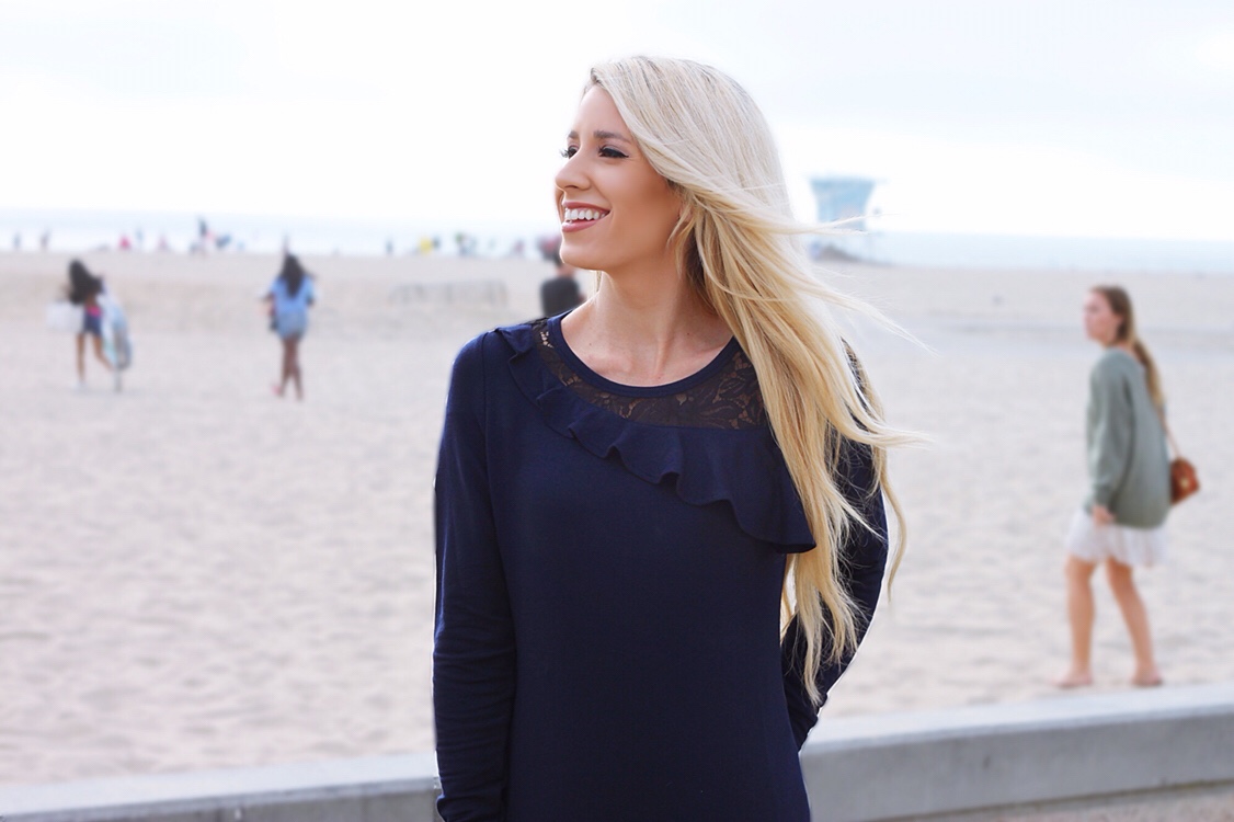 I hope you all had an amazing holiday! We got some quality family time in and it truly was a special weekend. I got the chance to wear my new classy popover shirt from Evy’s Tree and it seriously sooooo soft! The fabric is luxurious, the color is perfect, and the asymmetrical ruffle and lace detail across the front is ultra feminine and super cute. The lace wraps around to the back to show off a little skin while still keeping the top very classy! It also had a banded bottom that makes the fit that much batter!