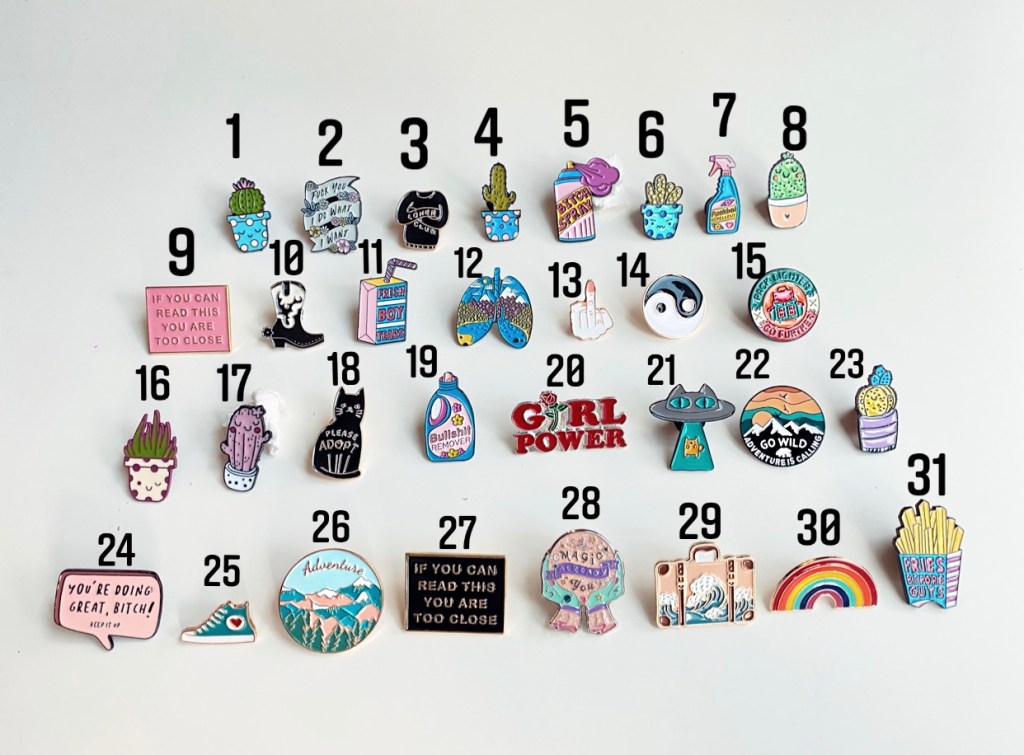 Please put the number of the pin you want in the notes! (see image at the bottom of page for an up close image of the pins!)